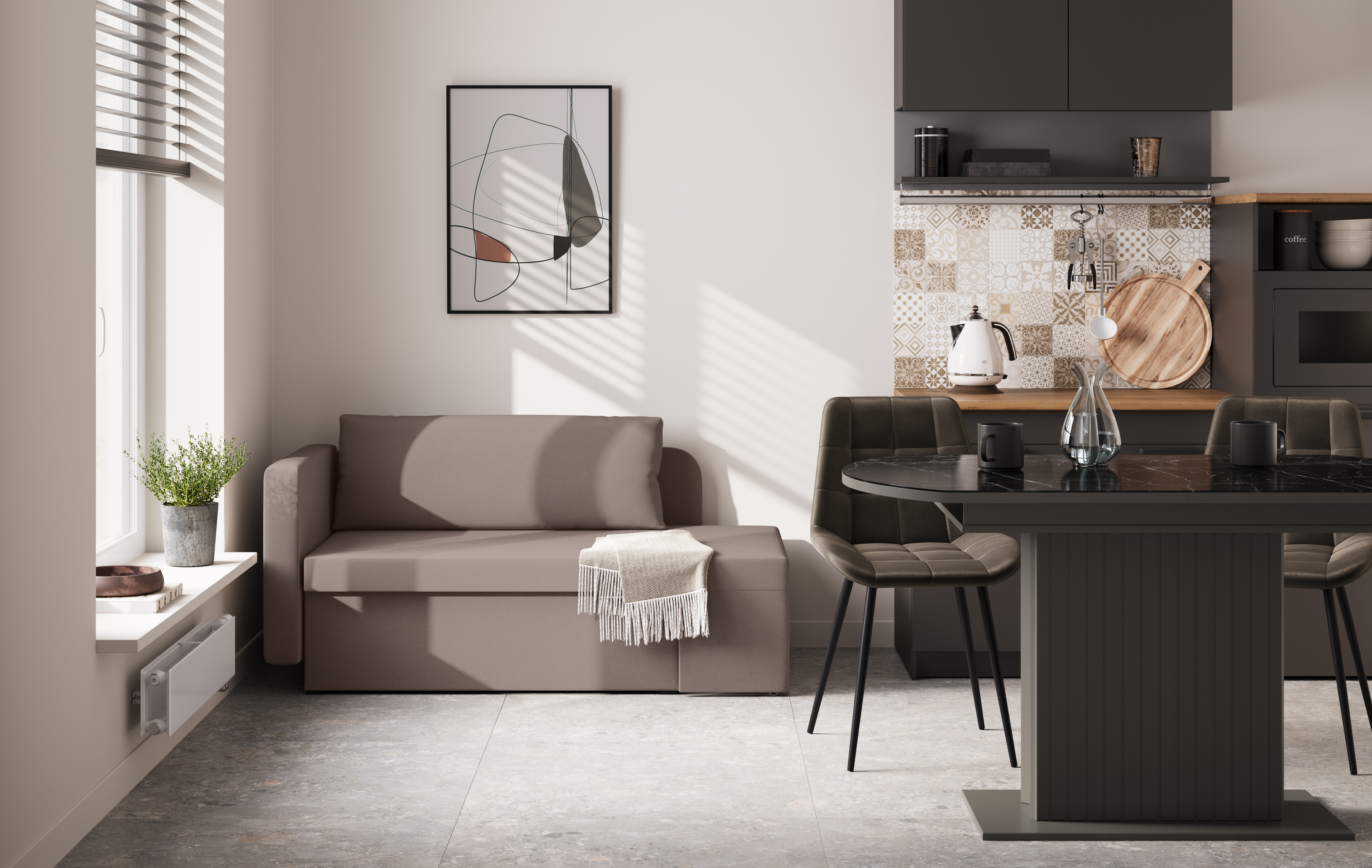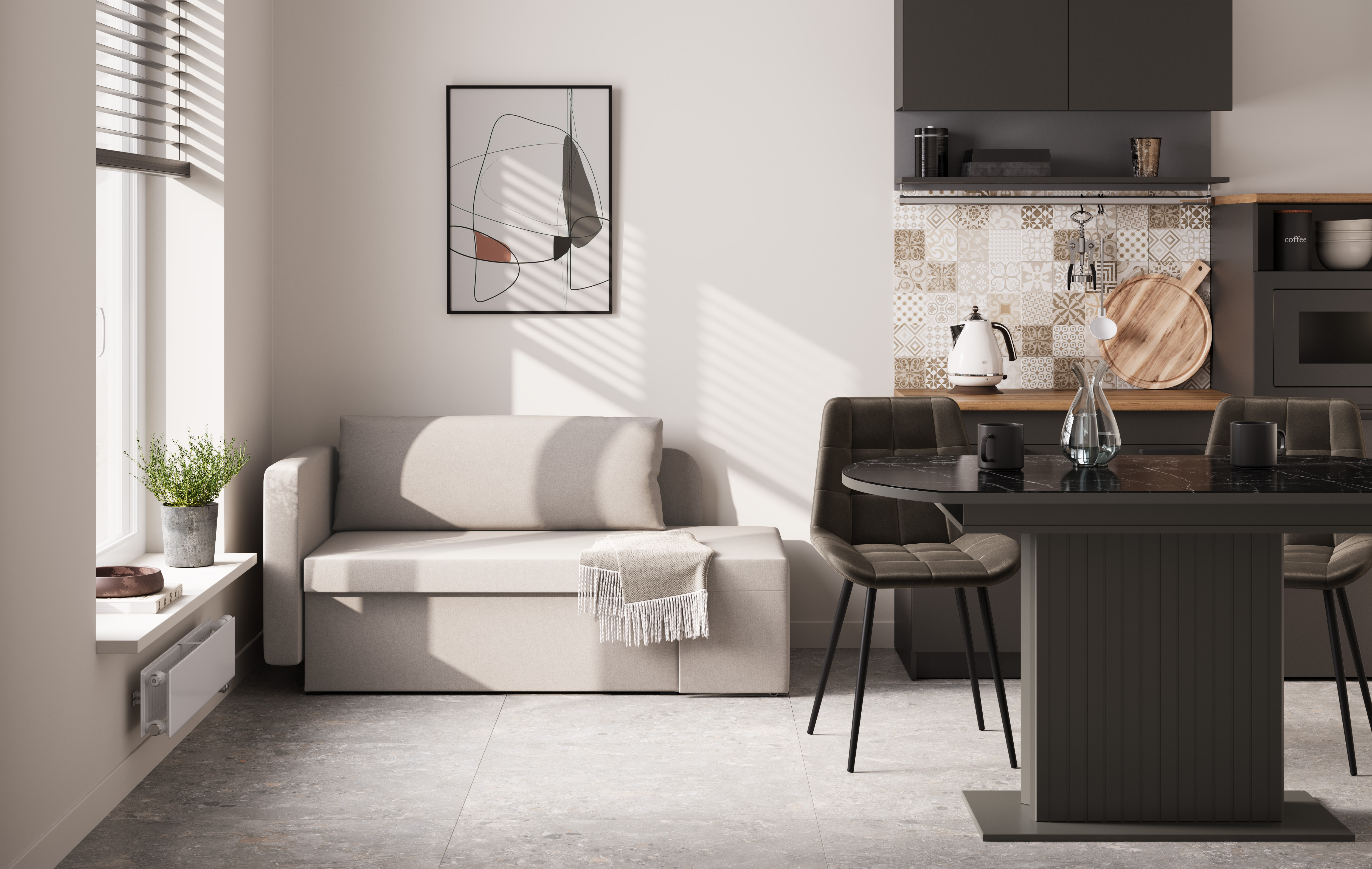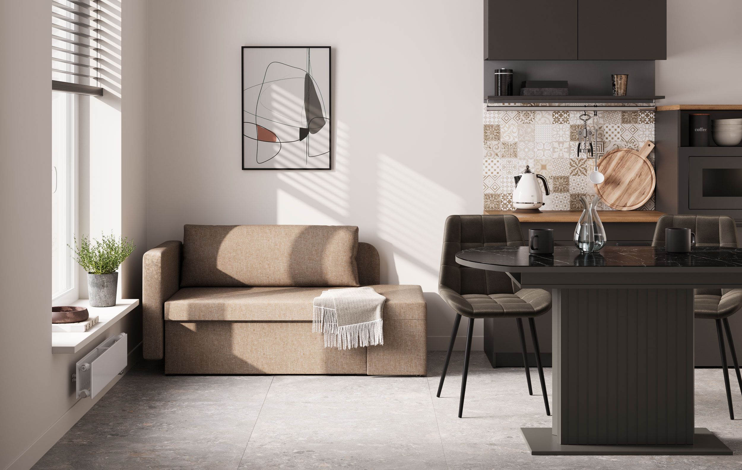 Шони / тахта (рогожка серая) совмещает благородную привлекательную эстетику с практичностью и хорошим функционалом. Продуманный дизайн уместно дополнит созданный интерьер и органично впишется в любое помещение.