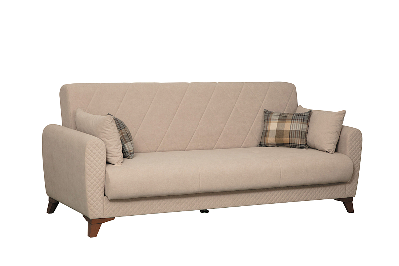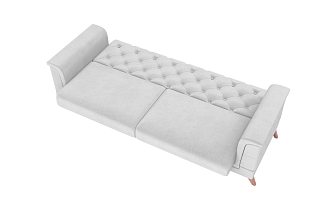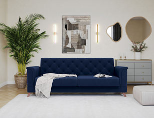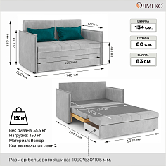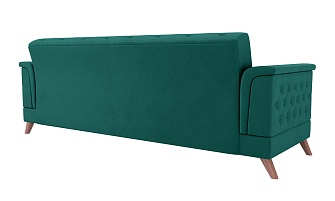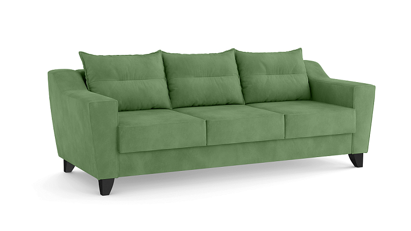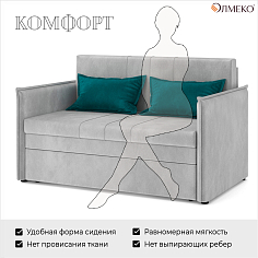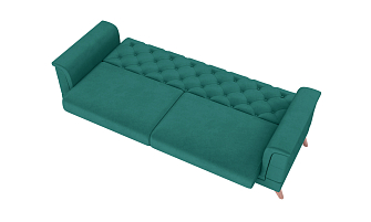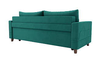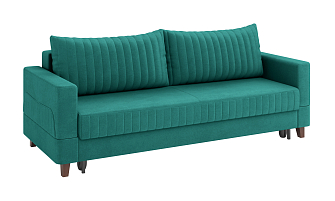 Заказала этот диван в изумрудном цвете. Понравилась его форма – строгая и в то же время необычная. Диван не громоздкий, занимает немного места как в сложенном, так и в разложенном положении. Раскладывается легко. Ткань плотная, качественная и приятная на ощупь.