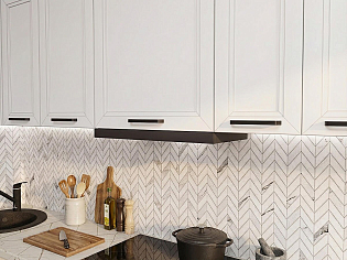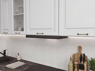 Главный плюс: много шкафчиков.  Выбрали вариант сандал белый. И не прогадали. Смотрится великолепное. Жаль, что двери идут без доводчиков.