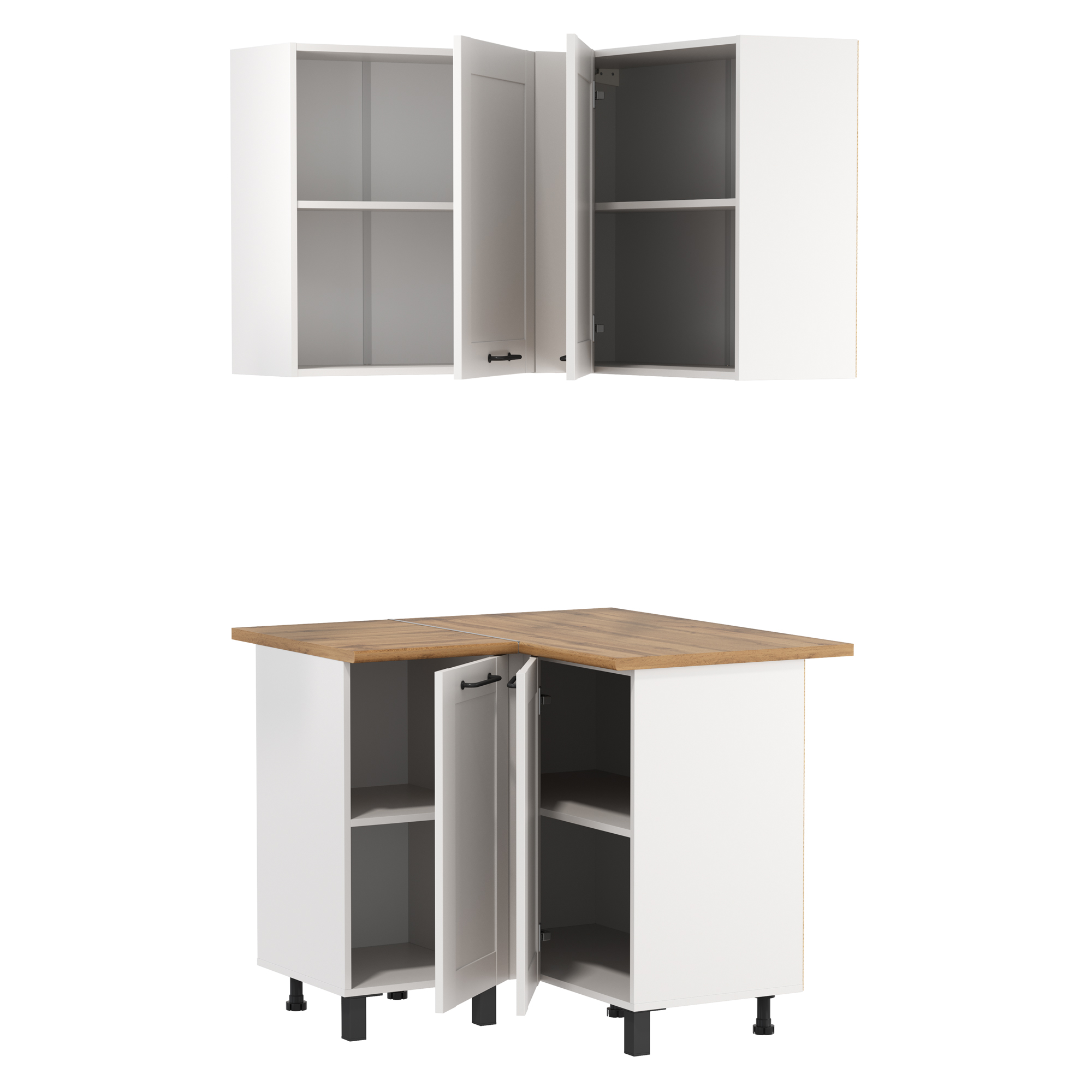 Кухня Аризона (угол) (белый / столешница: дуб вотан / ДВПО: белый / ПВХ софт белый 0,3мм / профиль: ПВХ белый О) совмещает благородную привлекательную эстетику с практичностью и хорошим функционалом. Продуманный дизайн уместно дополнит созданный интерьер и органично впишется в любое помещение.