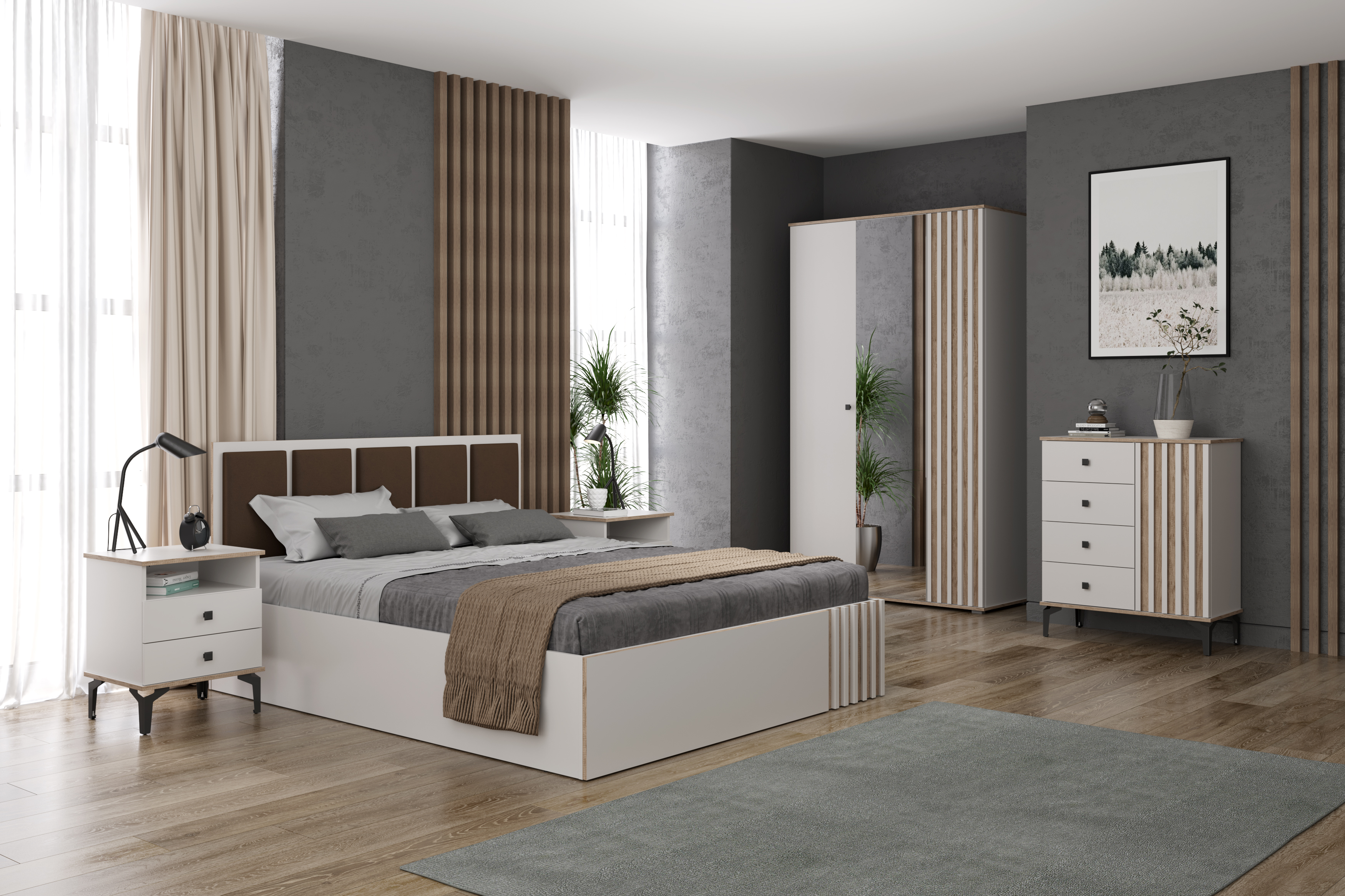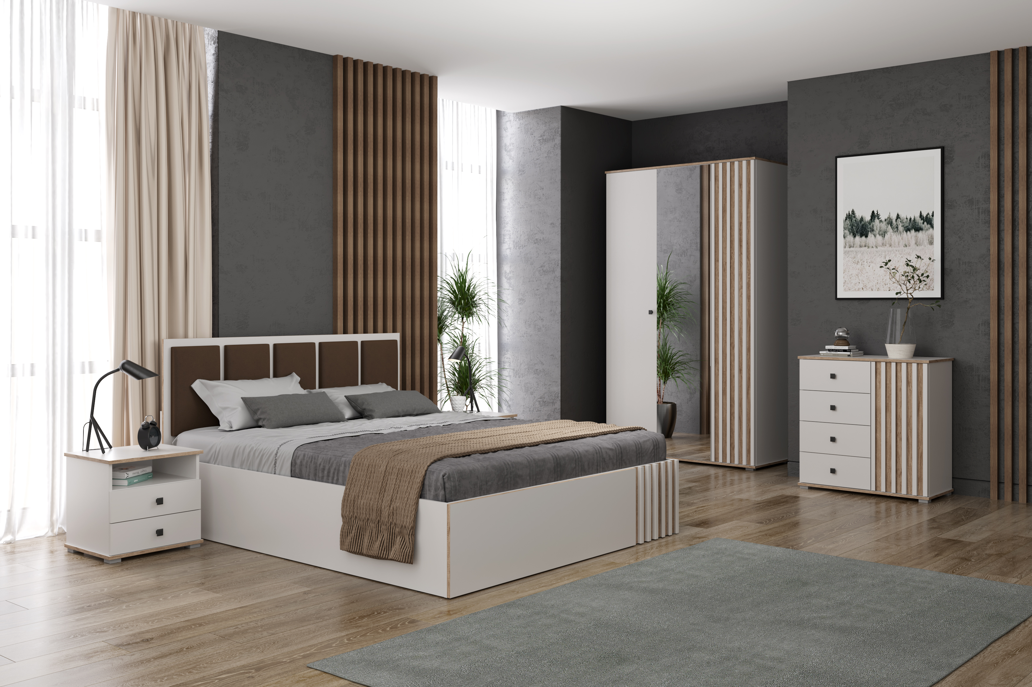 Спальный гарнитур Либерти совмещает благородную привлекательную эстетику с практичностью и хорошим функционалом. Продуманный дизайн уместно дополнит созданный интерьер и органично впишется в любое помещение.